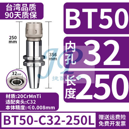 "台湾数控高精度强力刀柄BT40 BT30 BT50 CNC加工中心 C32夹头刀柄-BT50-C32-250防尘款 夹持范围3-25"商品可能已被商家删除,您可查看其他相似商品!