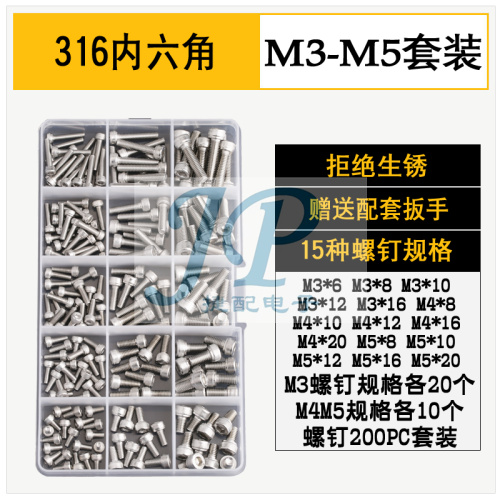 "304/316不锈钢/12.9级/尼龙内六角螺丝螺母组合套装螺栓螺钉盒装-TZ083:316内六角 (M3-M5)"商品可能已被商家删除,您可查看其他相似商品!