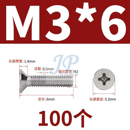 "304不锈钢十字平头螺丝小机沉头螺丝钉M2.5M3M4M5M6M8M10M12-M3*6(100个)"商品可能已被商家删除,您可查看其他相似商品!