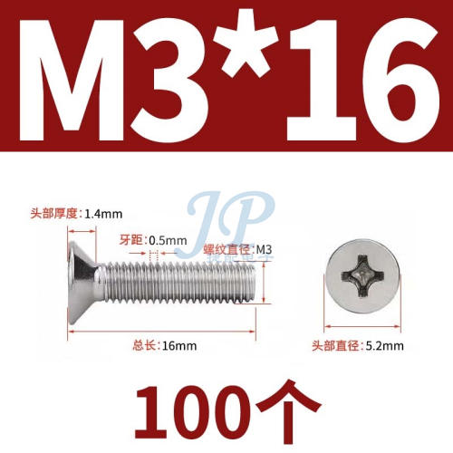 "304不锈钢十字平头螺丝小机沉头螺丝钉M2.5M3M4M5M6M8M10M12-M3*16(100个)"商品可能已被商家删除,您可查看其他相似商品!
