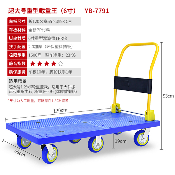 "无声静音平板车手推车搬运车拉货折叠拖车家用载重顺丰快递手拉车-【6轮超强载重款】120X65cm 载重1600斤(脚轮加强)"商品可能已被商家删除,您可查看其他相似商品!