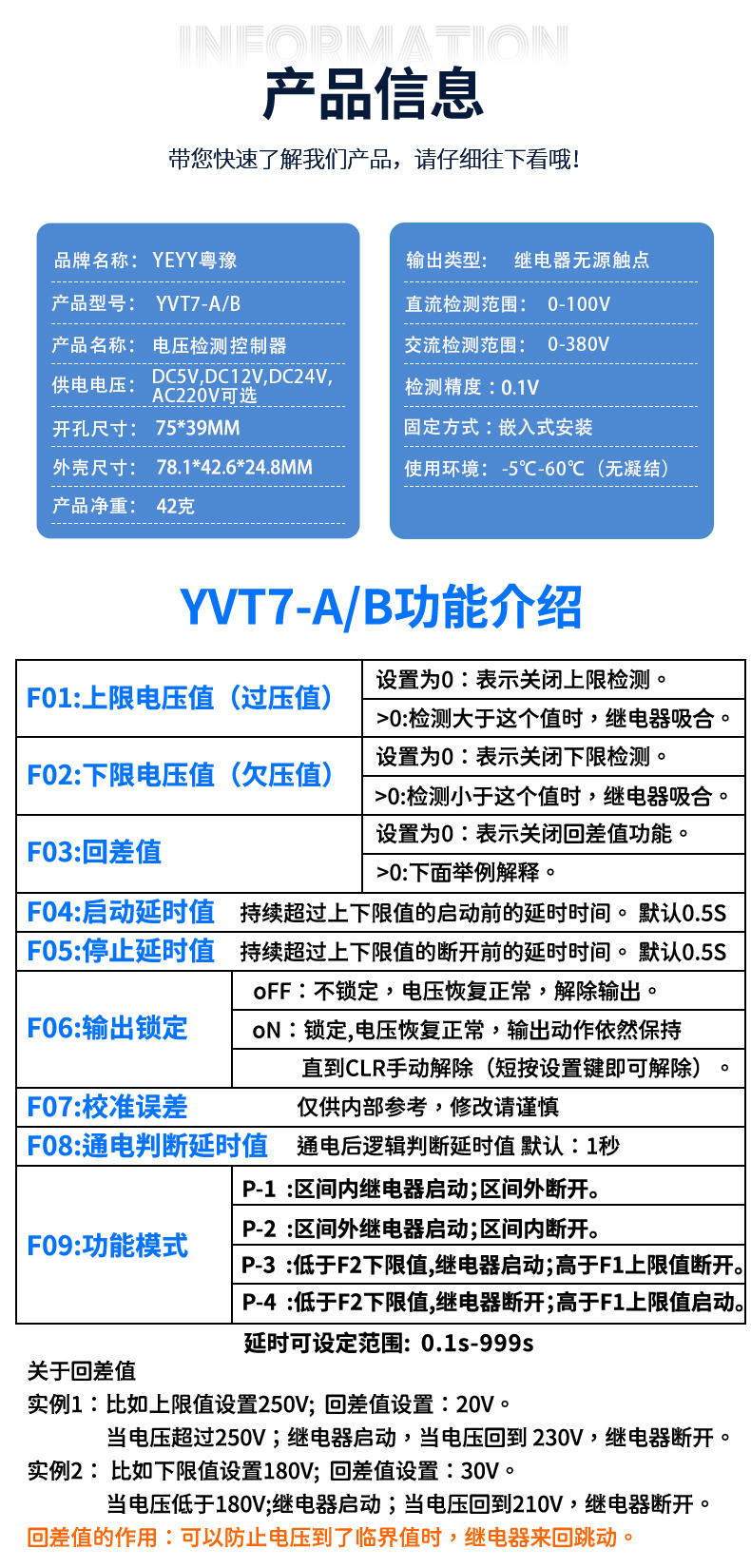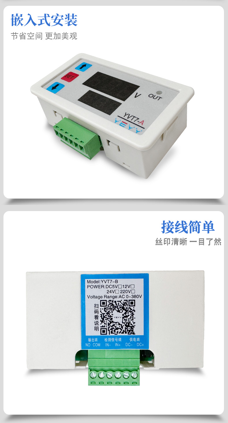 "电压检测模块直流交流过压上下限0-100v延时报警充放电继电器模块-YVT7-B供电24v检测交流0-380v"商品可能已被商家删除,您可查看其他相似商品!