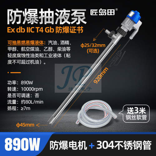 "匠岛田电动防爆防静电抽油器 304不锈钢油桶泵汽油溶剂手提抽液泵-880W防爆抽液泵/全不锈钢管"商品可能已被商家删除,您可查看其他相似商品!