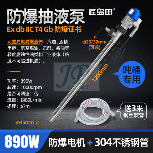"匠岛田电动防爆防静电抽油器 304不锈钢油桶泵汽油溶剂手提抽液泵-880W防爆抽液泵全钢管1.2米"商品可能已被商家删除,您可查看其他相似商品!