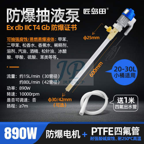 "匠岛田电动防爆防静电抽油器 304不锈钢油桶泵汽油溶剂手提抽液泵-880W防爆抽液泵PTFE管60厘米"商品可能已被商家删除,您可查看其他相似商品!