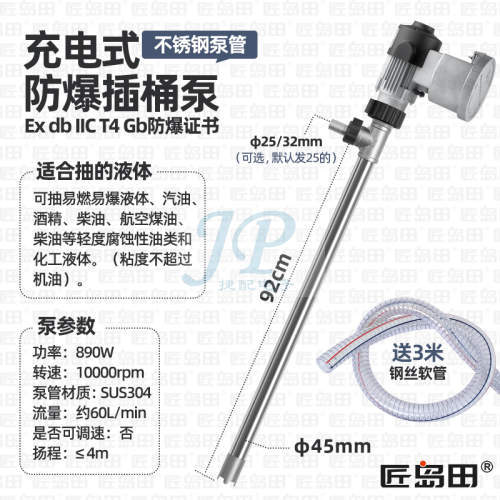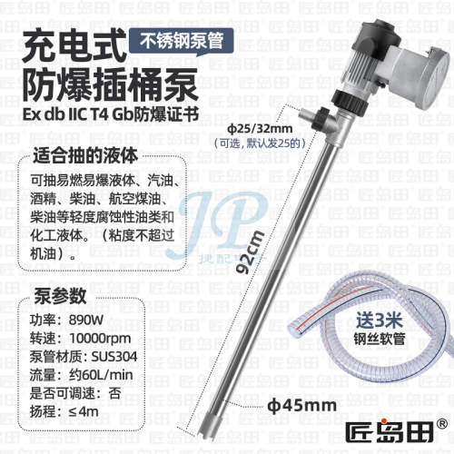 "匠岛田电动防爆防静电抽油器 304不锈钢油桶泵汽油溶剂手提抽液泵-充电式防爆防静电SUS304不锈钢"商品可能已被商家删除,您可查看其他相似商品!