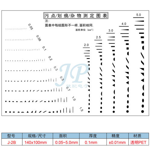 "菲林污点卡 标准点线规 菲林尺 比对卡片 外观检验规刮伤异物卡LZ-J-2B(2张)不覆膜厚0.1MM"商品可能已被商家删除,您可查看其他相似商品!