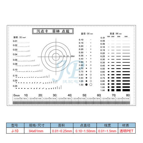 "菲林污点卡 标准点线规 菲林尺 比对卡片 外观检验规刮伤异物卡LZ-J-10(2张)不覆膜厚0.1MM"商品可能已被商家删除,您可查看其他相似商品!