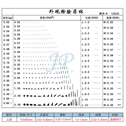 "菲林污点卡 标准点线规 菲林尺 比对卡片 外观检验规刮伤异物卡LZ-J-28(2张)不覆膜厚0.1MM"商品可能已被商家删除,您可查看其他相似商品!