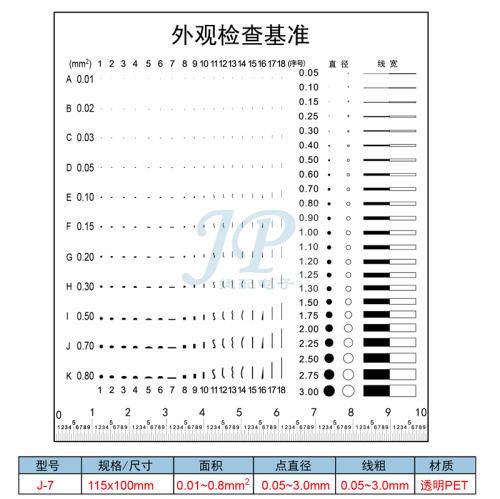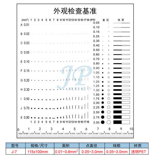 "菲林污点卡 标准点线规 菲林尺 比对卡片 外观检验规刮伤异物卡LZ-J-7(2张)覆膜厚0.15MM"商品可能已被商家删除,您可查看其他相似商品!