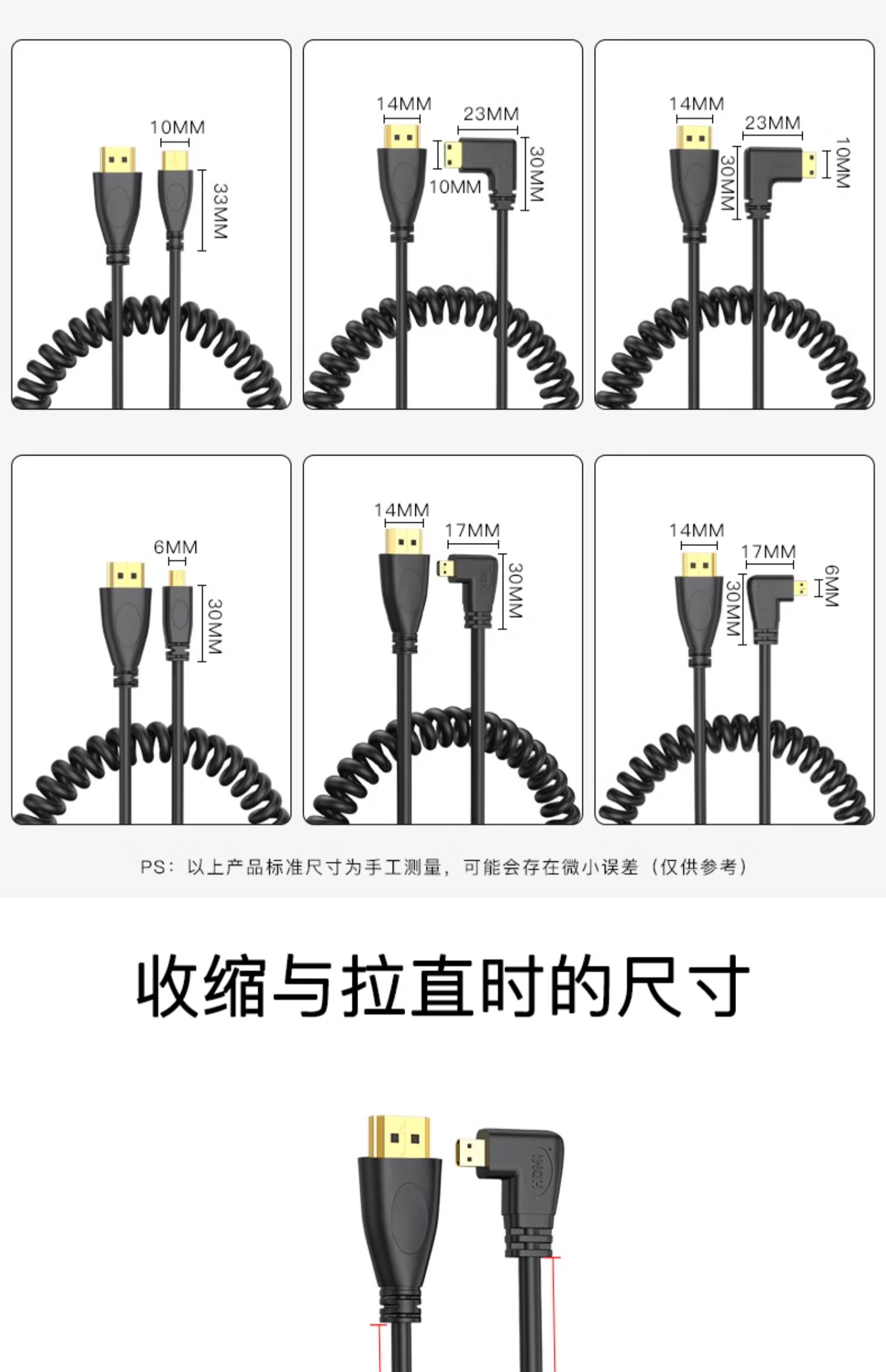 "HDMI转Mini HDMI线Micro转接线hdmi弯头90度伸缩弹簧线4K高清线-HDMI A-D型(Micro HDMI)直对直 0.5米"商品可能已被商家删除,您可查看其他相似商品!