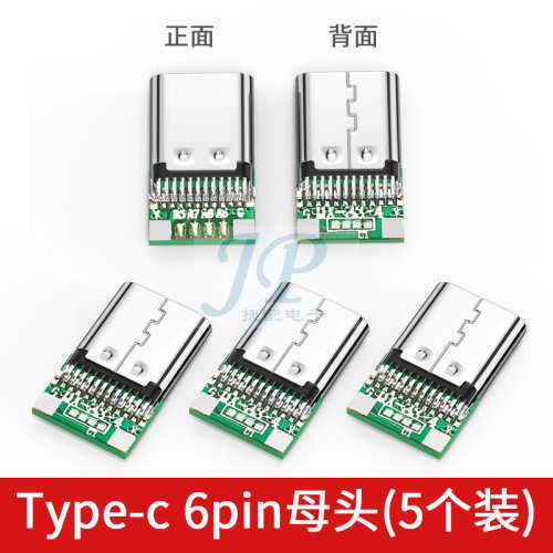 "USB快充Type-C插头PCB焊线接头USB3.1带芯片5PIN公母头测试母座-Type-c 6pin母头(5个装)支持100W"商品可能已被商家删除,您可查看其他相似商品!
