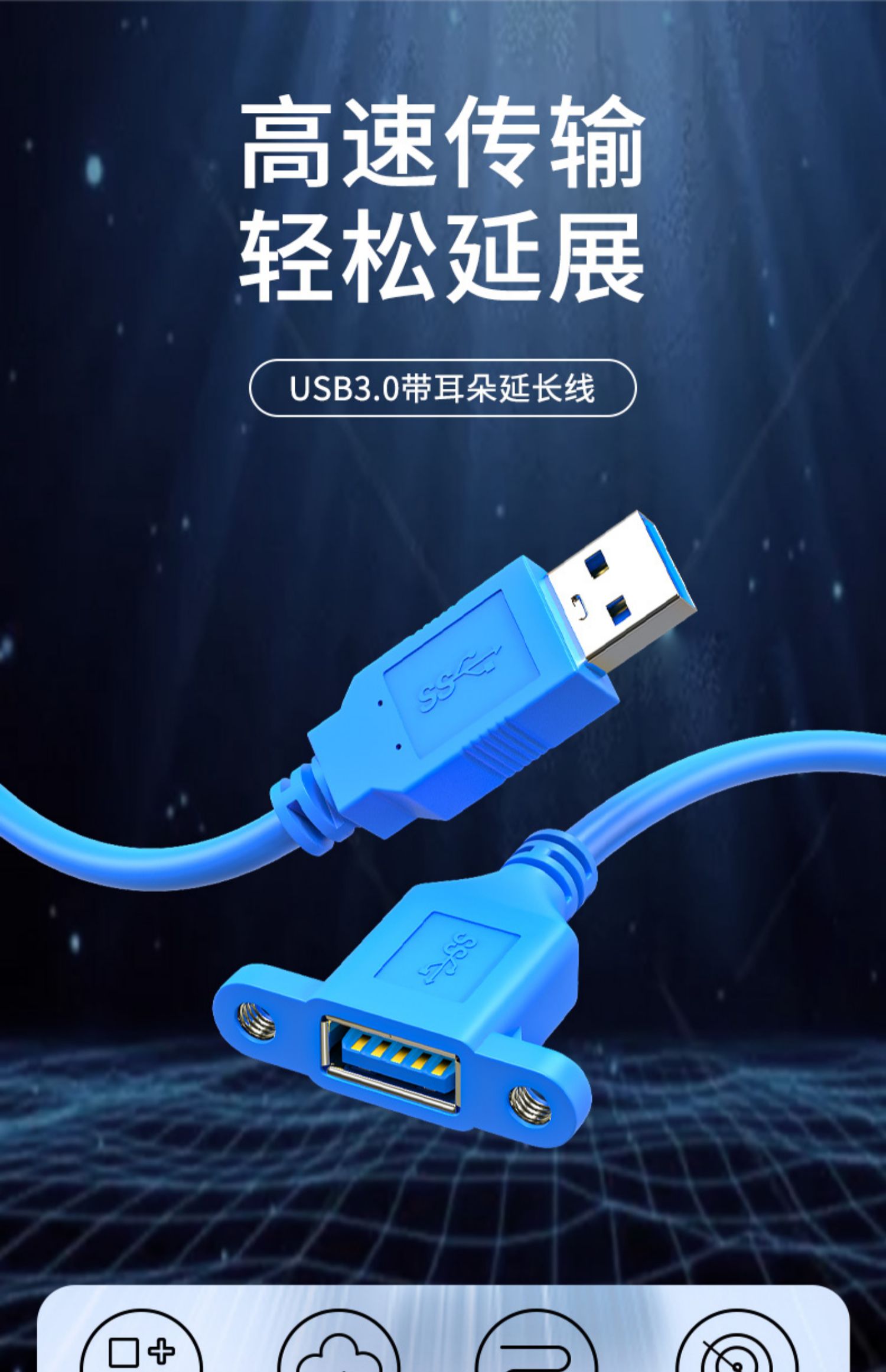 "炬信USB延长线 带耳朵可固定数据线USB3.0公对母带螺丝孔固定线-【升级款3.0】正标USB公对母带耳朵【蓝色】 0.6m"商品可能已被商家删除,您可查看其他相似商品!