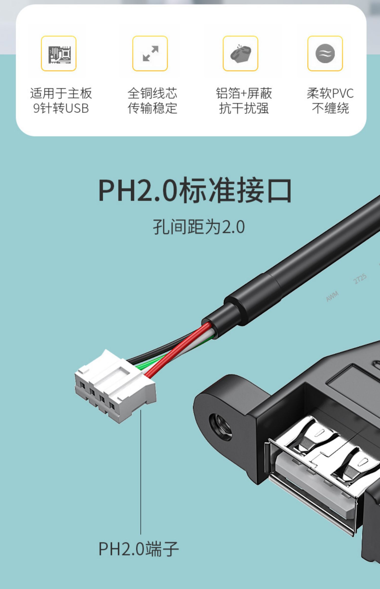 "电脑主机内置USB线杜邦2.54转USB母口PH2.0转USB带耳朵数据线端子-PH2.0端子4P转USB母带耳朵线 0.5m"商品可能已被商家删除,您可查看其他相似商品!