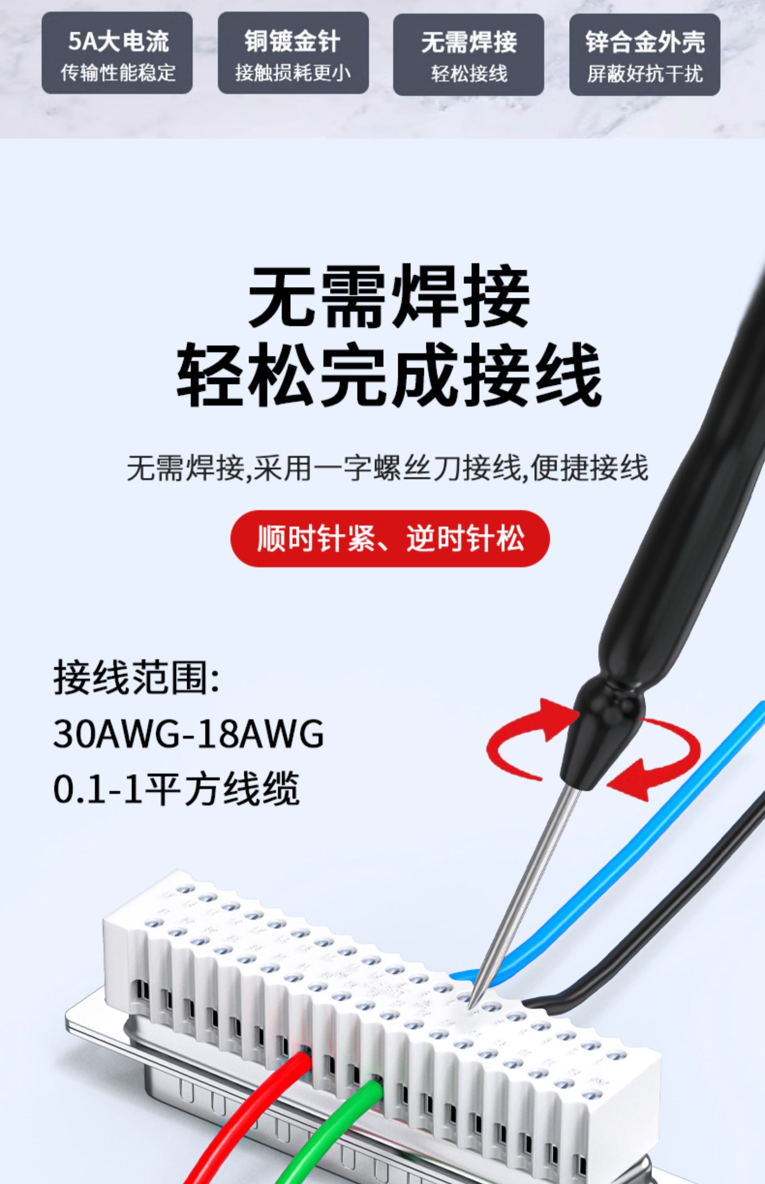 "新型DB9 DB15免焊接头公头DB25 DB37母头转接线端子9针串口头无铅-【新型】免焊冲针镀金母头+ABS塑壳☆3A电流MX90KFA"商品可能已被商家删除,您可查看其他相似商品!