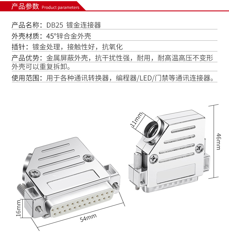 "DB25公头母头2排25针插头并口接头45度出线孔连接器D-SUB25P接口-DB25实心针镀金母头带胶塞"商品可能已被商家删除,您可查看其他相似商品!