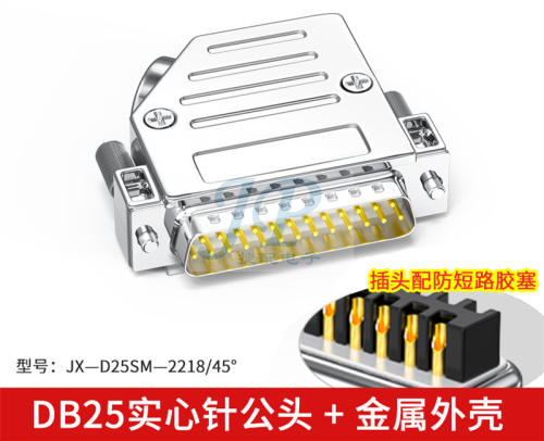 "DB25公头母头2排25针插头并口接头45度出线孔连接器D-SUB25P接口-【带胶塞】DB25实心针镀金公头+45度金属壳2218"商品可能已被商家删除,您可查看其他相似商品!