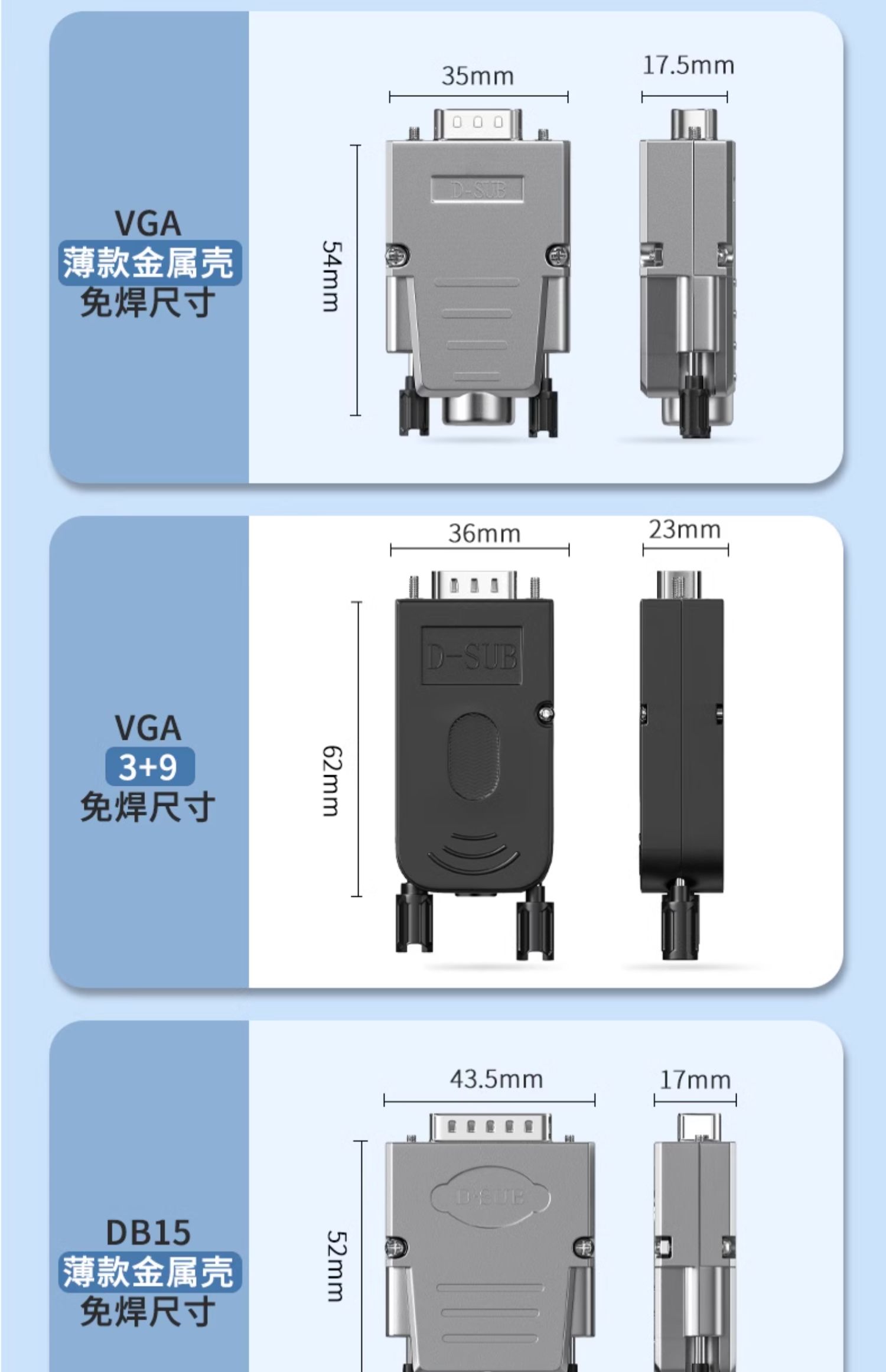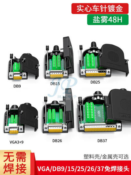 "DB9 DB15 DB25针DB26 37 PIN VGA公母头 免焊 接头COM串口9针插件-【薄款金属壳】VGA3排15针镀金母头螺杆螺母"商品可能已被商家删除,您可查看其他相似商品!