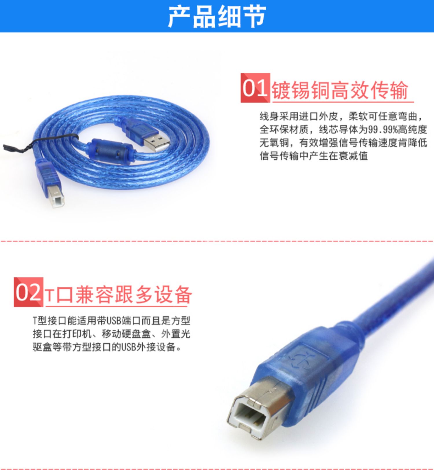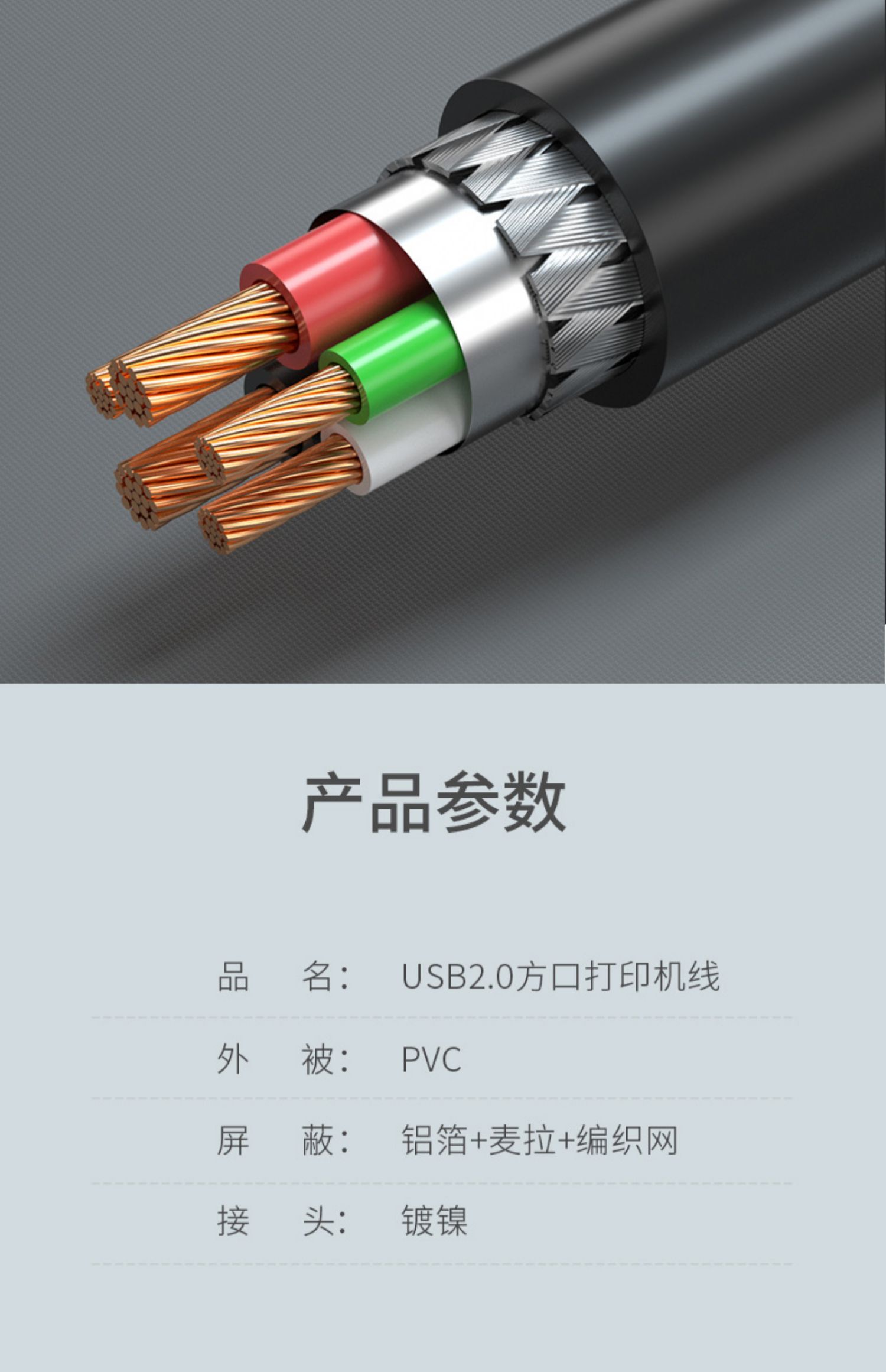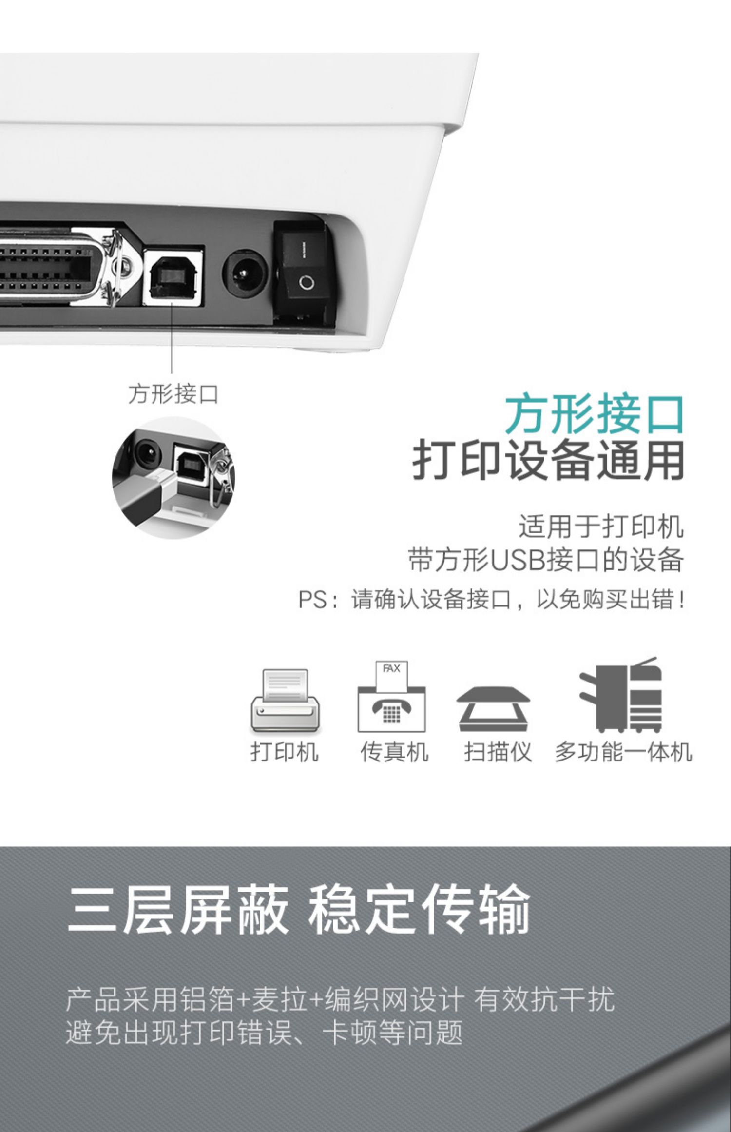 "纯铜USB打印线 2米 3米5米USB打印机数据线高速方口屏蔽线延长线-【高品质】USB黑灰网打印线【铝壳】 1.5m"商品可能已被商家删除,您可查看其他相似商品!