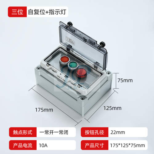 "户外防水按钮盒电源开关控制盒启动盒停止旋钮急停按键箱保护罩子-3位 红绿自复按钮+红指示灯(备注电压)"商品可能已被商家删除,您可查看其他相似商品!
