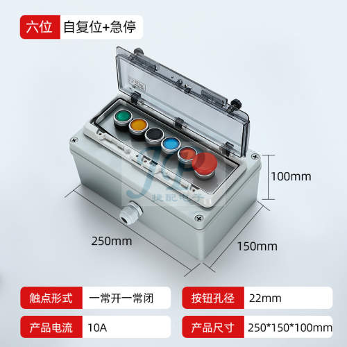 "户外防水按钮盒电源开关控制盒启动盒停止旋钮急停按键箱保护罩子-6位 红黄蓝绿黑自复+急停钮"商品可能已被商家删除,您可查看其他相似商品!