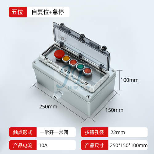 "户外防水按钮盒电源开关控制盒启动盒停止旋钮急停按键箱保护罩子-5位 红黄蓝绿自复按钮+急停钮"商品可能已被商家删除,您可查看其他相似商品!