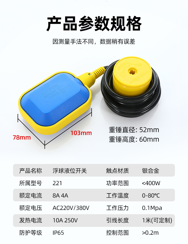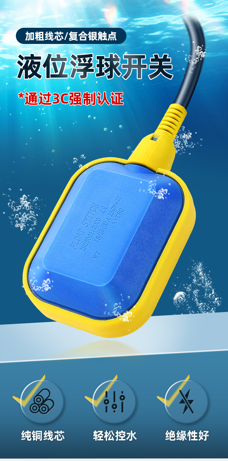"浮球开关液位水位控制器水塔自动上水抽水感应器水泵传感器浮球阀-圆形0.5平方/4米"商品可能已被商家删除,您可查看其他相似商品!