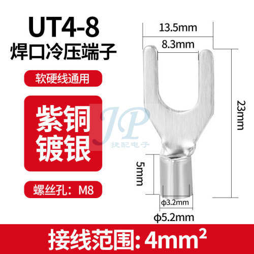 "U型接线端子焊口UT冷压端子紫铜叉型线鼻子y型线耳压线接头裸端头-紫铜UT4-8/50只"商品可能已被商家删除,您可查看其他相似商品!