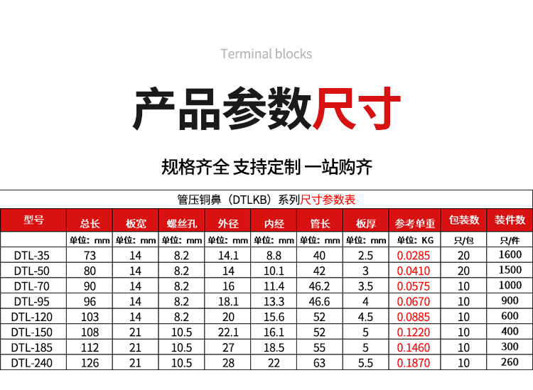 "小头DTL铜铝鼻子接线端子空开塑壳断路器窄头线鼻子35/50/70平方-小头铜铝鼻子DTK-150"商品可能已被商家删除,您可查看其他相似商品!
