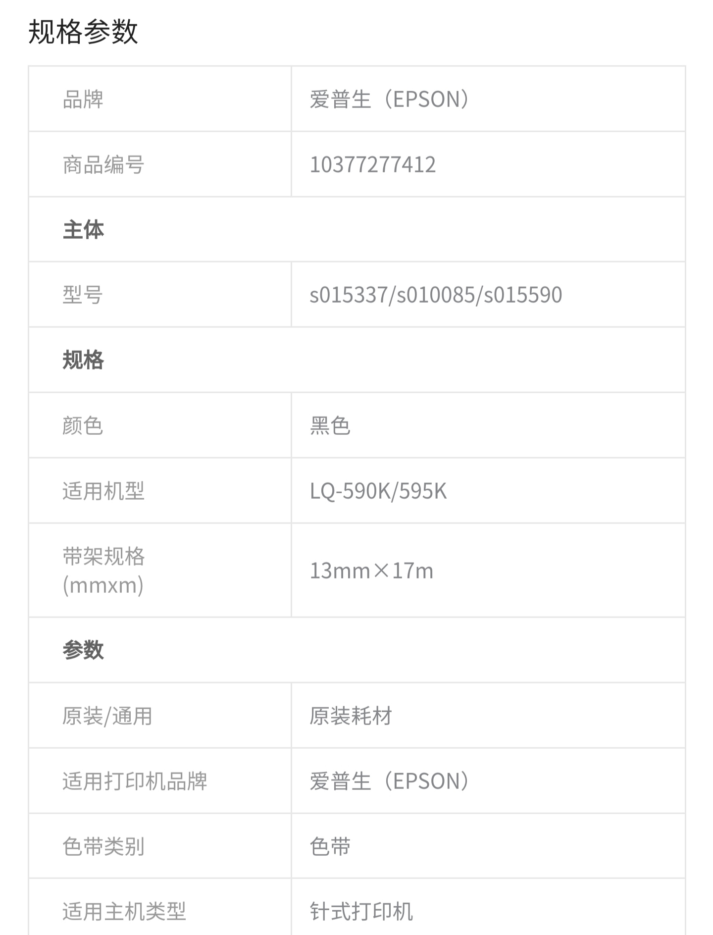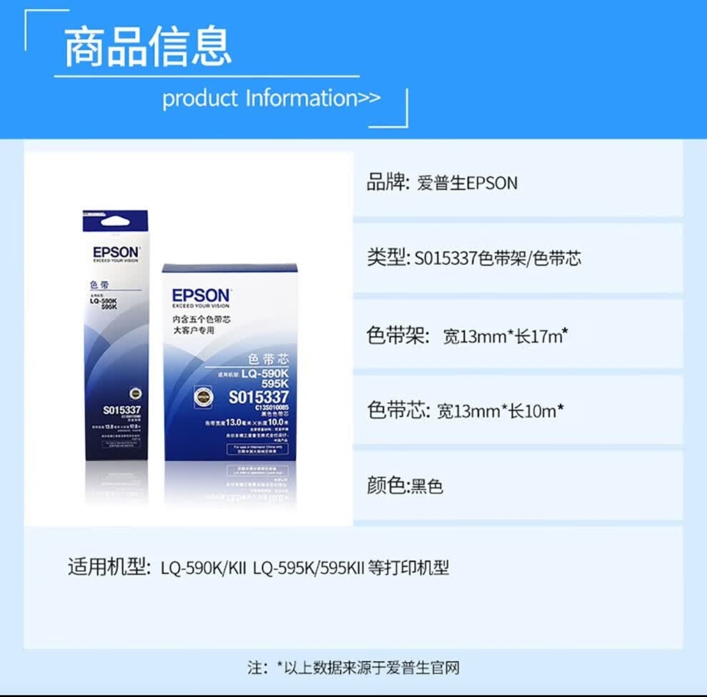 适配机型/耗材 : LQ-590K /KII LQ-595K /KII |