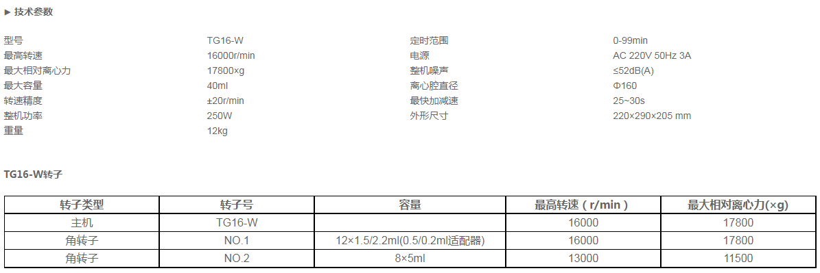 尺寸 : 最高转速16000 最大离心力17800 容量50ml 主机带NO.1转子TG16-W——商品选配件 以下超链接 选购~~~ |