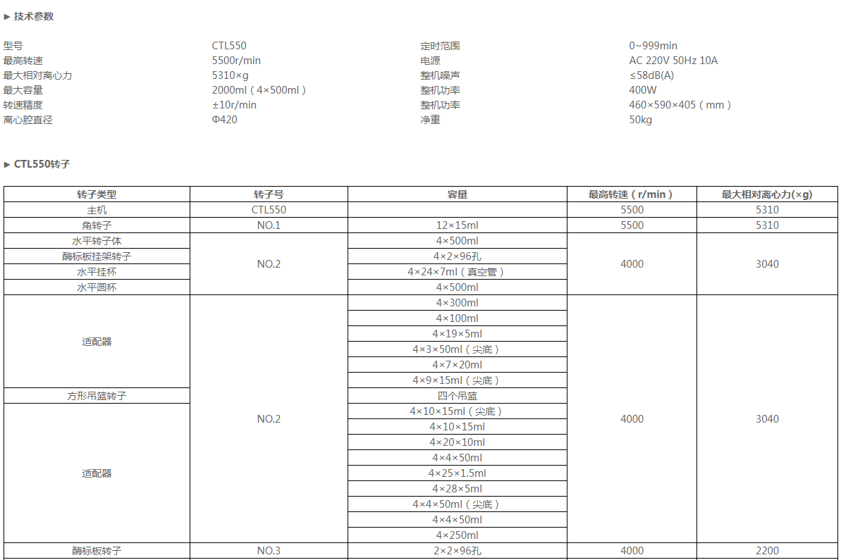 尺寸 : 最高转速5500 最大离心力5310 容量2000ml 主机CTL550——商品选配件 以下超链接 选购~~~ |