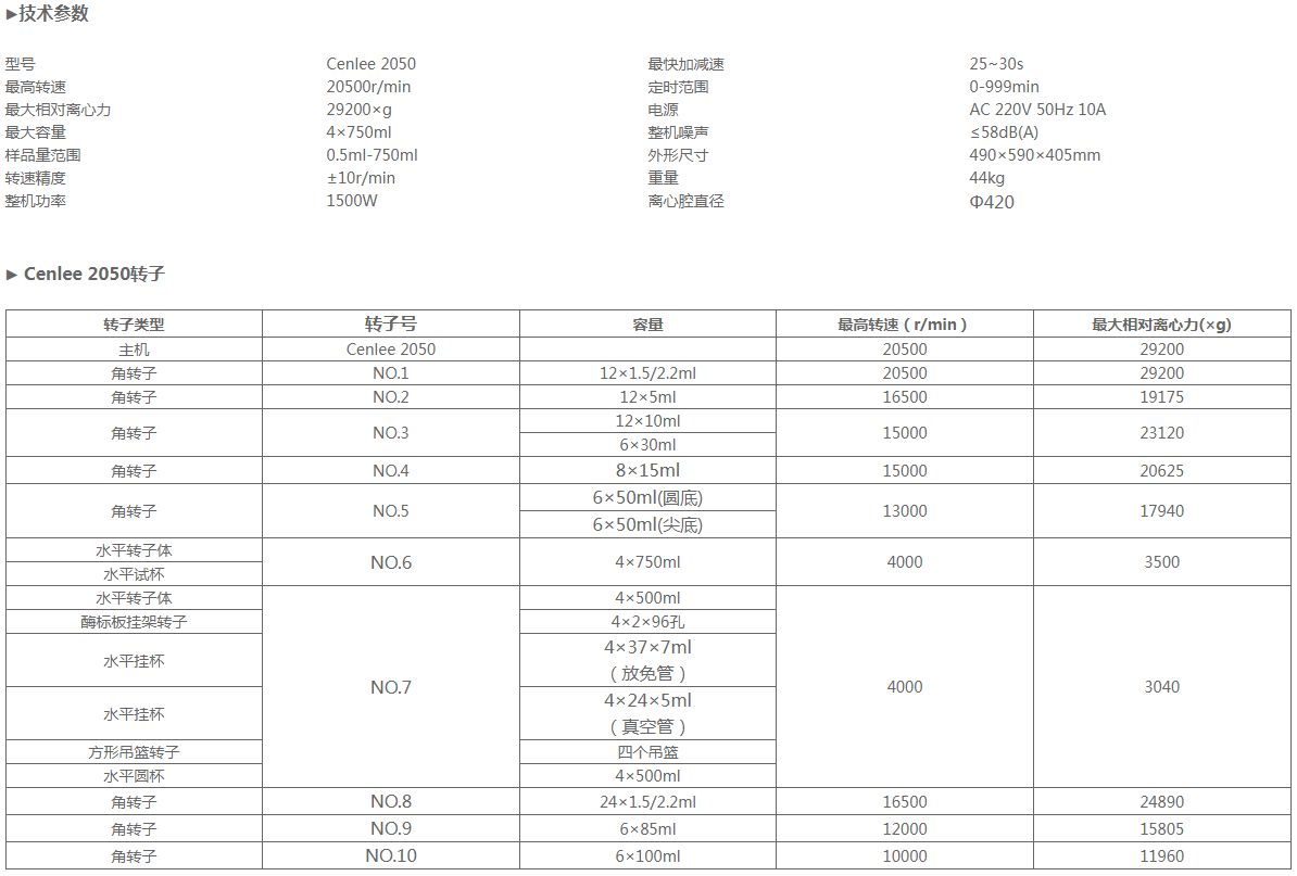 尺寸 : 最高转速20500 最大离心力29200 容量3000ml 主机Cenlee2050——商品选配件 以下超链接 选购~~~ |