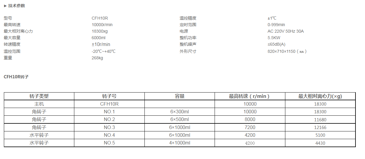 尺寸 : 最高转速10000 最大离心力18300 容量6000ml 主机CFH10R——商品选配件 以下超链接 选购~~~ |