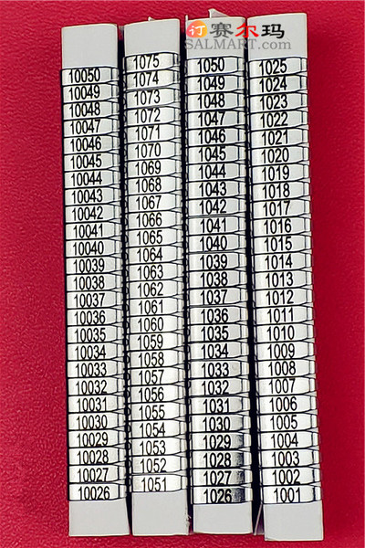 名称:耳标[双面耳标] C1-C100 ——100个装(满200发货)/规格:100个装耳标参数:宽度2.5mm正面长度9mm重量0.14g///更多产品欢迎查询我们官网:www.salmart.cn,销售人员QQ:3344179313 QQ:996676869 电话:0755-33160345,13006636686