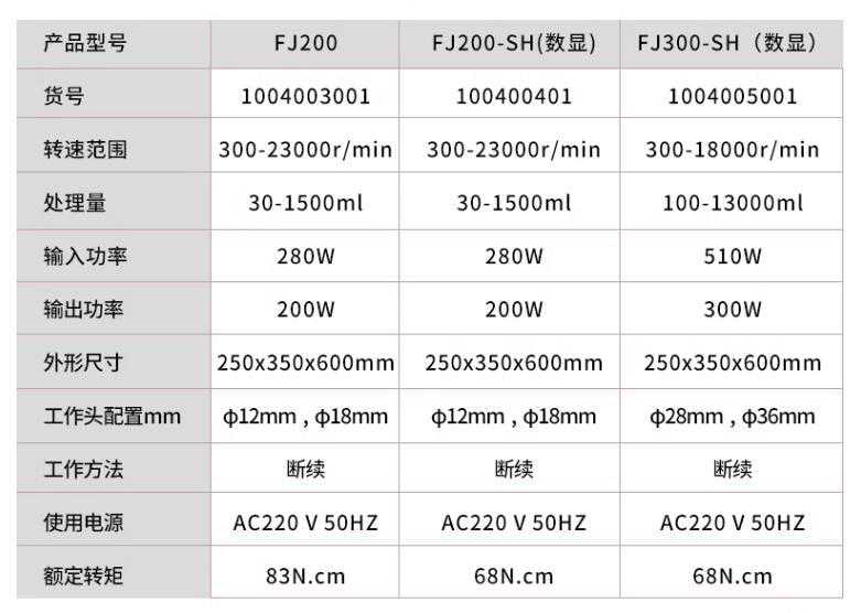 商品名称:FJ系列高速分散均质仪//型号:FJ300-SH数显//参数:300~18000转、100-13000ml、68N.cm、标配φ28mm、φ36mm//编号:SEM-1004005001//更多产品欢迎查询我们官网:www.salmart.cn,销售人员QQ:439095771 QQ:996676869 电话:0755-33160345,13006636686