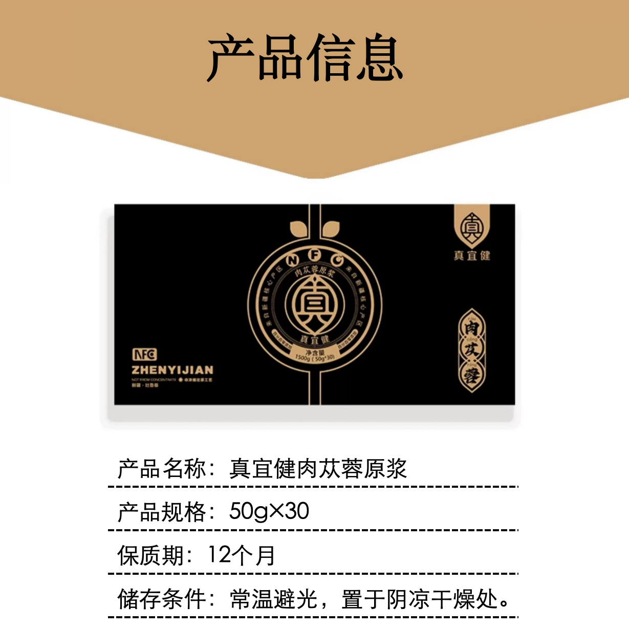 适配机型/耗材 : 真宜健 NFC肉苁蓉原浆 1500g/盒(50g*30瓶) |