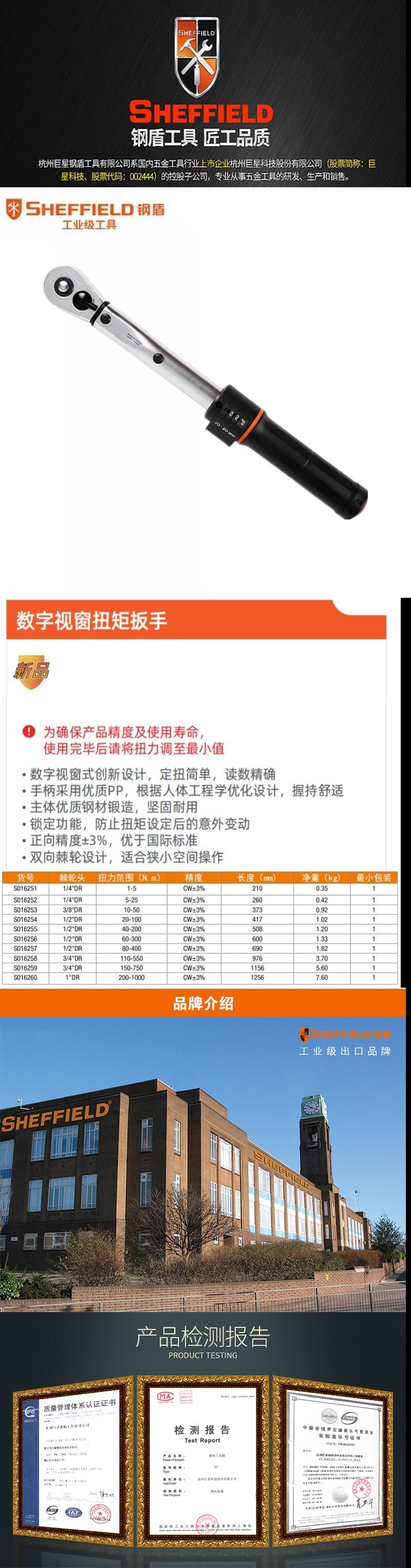 "钢盾 (SHEFFIELD) S016259 数字视窗扭矩扳手150-750N.m"商品可能已被商家删除,您可查看其他相似商品!