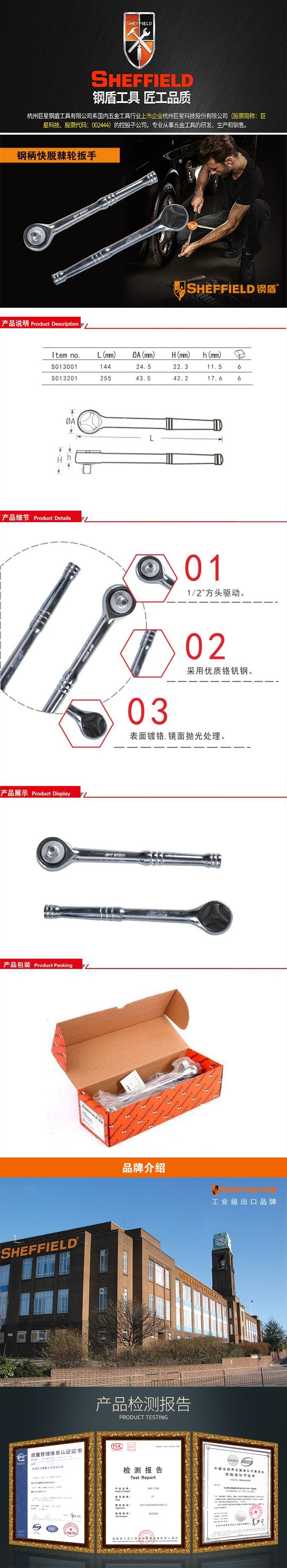 "钢盾 (SHEFFIELD) S013201 12.5mm系列钢柄快脱棘轮扳手 45齿棘轮维修扳手汽修工具"商品可能已被商家删除,您可查看其他相似商品!
