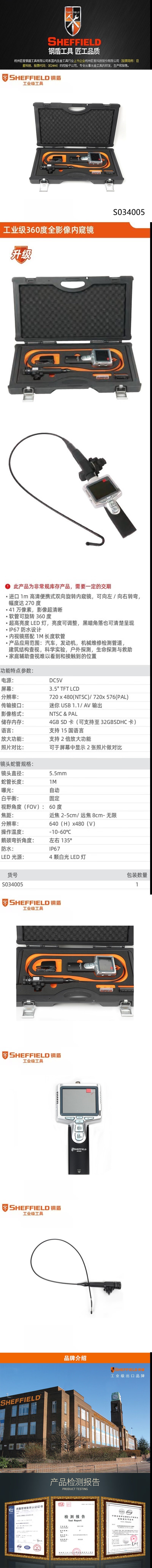 "钢盾 (SHEFFIELD) S034005 工业级360度全影像内窥镜 汽车发动机机械维修检测管道"商品可能已被商家删除,您可查看其他相似商品!