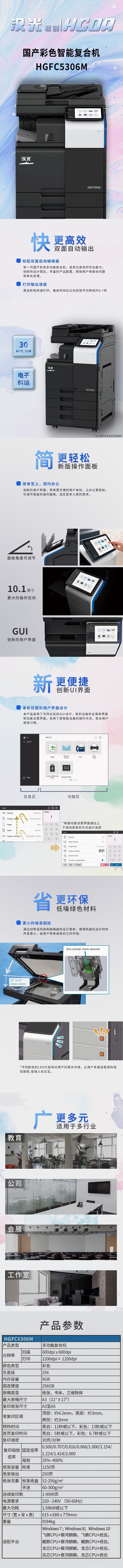 "中船汉光 HGFC5306M 国产信创A3彩色多功能一体机复印机/打印复印扫描(主机+输稿器+双纸盒+工作柜)"商品可能已被商家删除,您可查看其他相似商品!