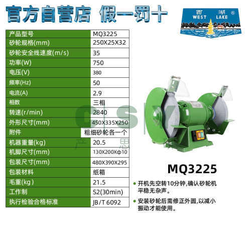 "西湖砂轮机台式电动磨刀家用小型立式工业级环保除尘式砂轮机M322-西湖台式MQ3225/250mm三相 原装正品"商品可能已被商家删除,您可查看其他相似商品!