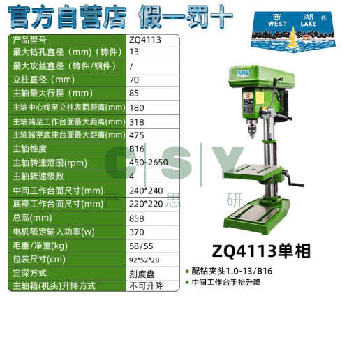 "西湖台钻小型220v ZHX-13 ZQ4113 ZQ4116 ZQD4125 ZQ4132家用工业-西湖ZQ4113单相220V 方工作台"商品可能已被商家删除,您可查看其他相似商品!