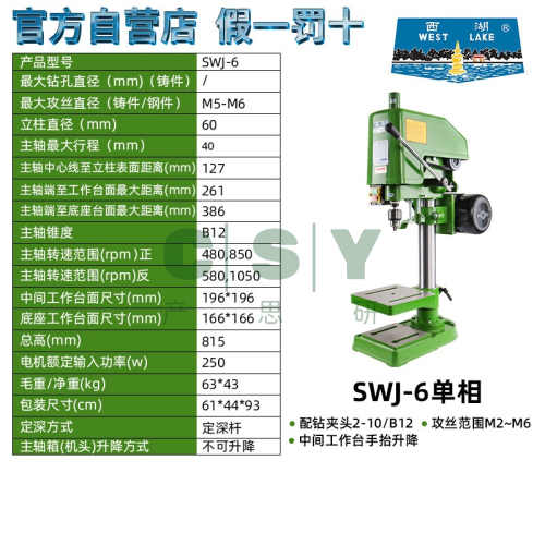 "西湖攻丝机西湖牌攻丝机台式攻牙机西湖swj3 6 6A 10 12 16 20 33-杭州西湖牌SWJ-6单相220v原装正品 方形工作台"商品可能已被商家删除,您可查看其他相似商品!