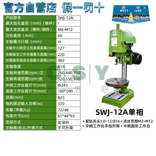 "西湖攻丝机西湖牌攻丝机台式攻牙机西湖swj3 6 6A 10 12 16 20 33-杭州西湖牌SWJ-12A单相220v原装正品 圆形工作台"商品可能已被商家删除,您可查看其他相似商品!