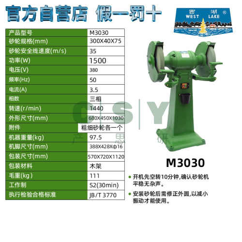 "西湖砂轮机台式电动磨刀家用小型立式工业级环保除尘式砂轮机M322-西湖落地式M3030/300mm三相 原装正品"商品可能已被商家删除,您可查看其他相似商品!