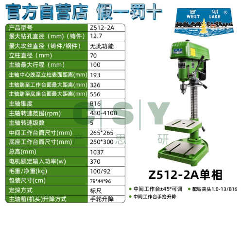 "杭州西湖台钻Z512b Z516 高精度精密重型工业级380v钻孔台式钻床-西湖正品Z512-2A/单相220V/370W 工业级"商品可能已被商家删除,您可查看其他相似商品!