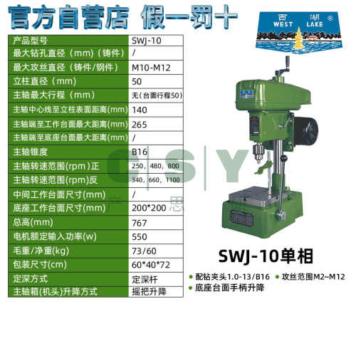 "西湖攻丝机西湖牌攻丝机台式攻牙机西湖swj3 6 6A 10 12 16 20 33-杭州西湖牌SWJ-10单相220v原装正品 上升式"商品可能已被商家删除,您可查看其他相似商品!