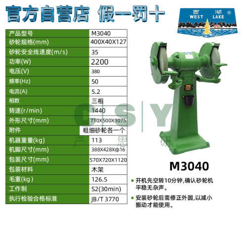 "西湖砂轮机台式电动磨刀家用小型立式工业级环保除尘式砂轮机M322-西湖落地式M3040/400mm三相 原装正品"商品可能已被商家删除,您可查看其他相似商品!