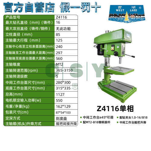 "杭州西湖台钻Z512b Z516 高精度精密重型工业级380v钻孔台式钻床-西湖正品Z4116/单相220V/550W 工业级"商品可能已被商家删除,您可查看其他相似商品!